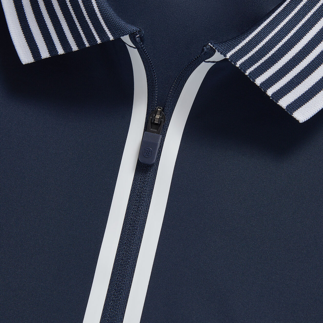 Properti Wicking Kelembaban untuk Hari -hari Panas Ritsleting panjang seperempat dengan tarik karet bermerek & dibingkai dengan pita terikat panas Kerah rajutan datar dengan detail garis beraneka ragam Logo silikon tonal di kuk belakang