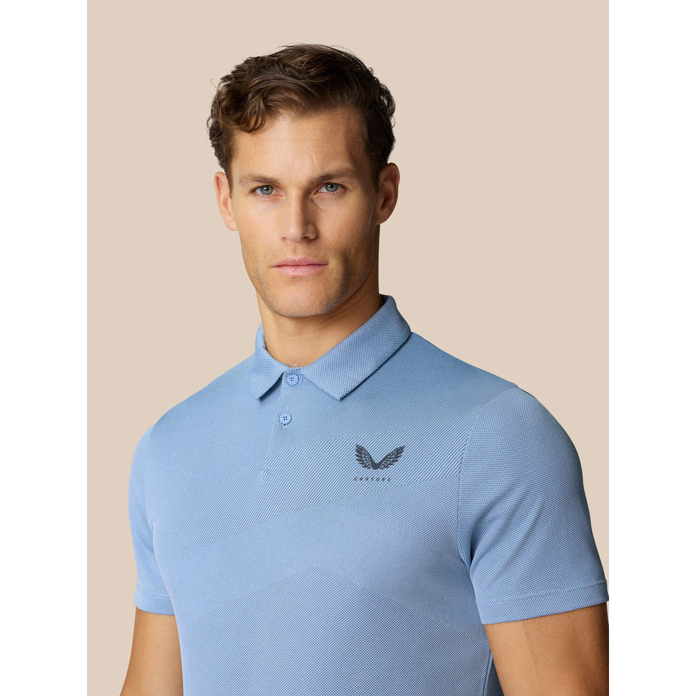 Logo Castore di punggung atas: Branding premium yang menyoroti kualitas polo.