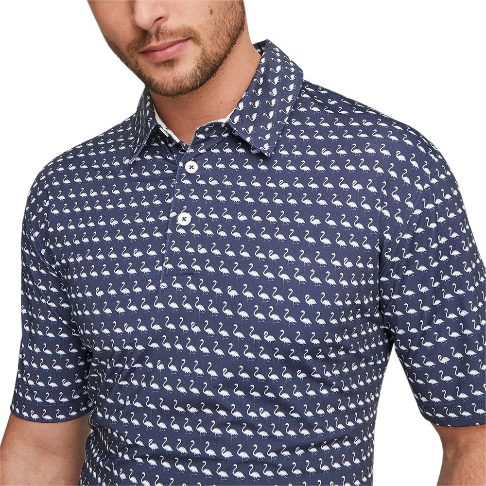 Bawalah daerah tropis ke lapangan golf dengan kemeja polo ini-lengkap dengan teknologi kelembaban dan kawanan flamingo utuh.