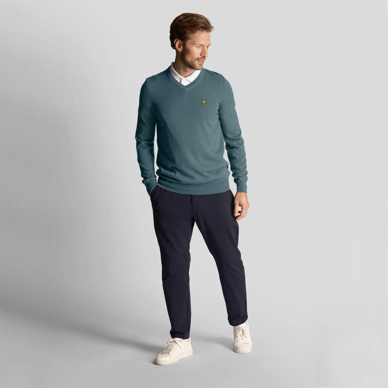 Lyle & Scott Golf Merino Blend v Neck Pullover - Iron Blue
