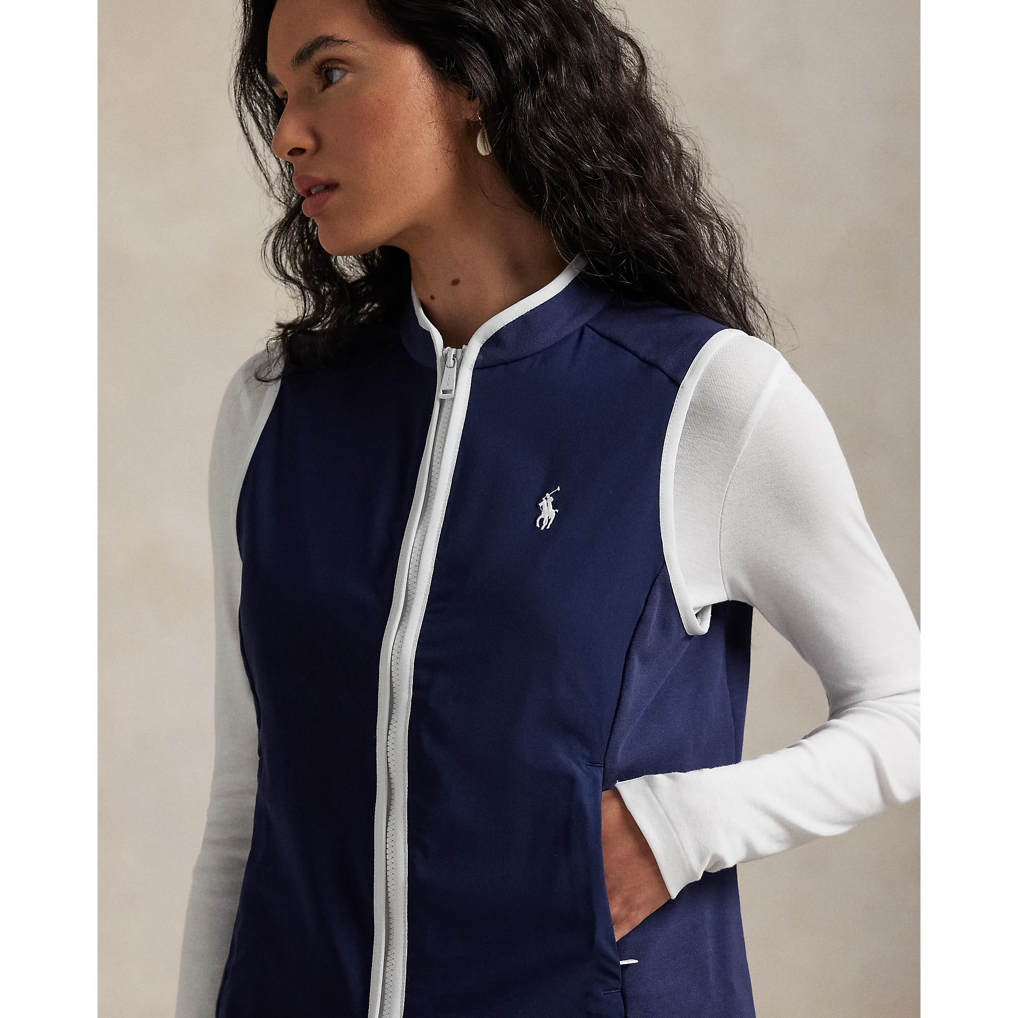 Rlx Ralph Lauren Lauren Tech Terry Golf Vest - Angkatan Laut/Keramik Putih