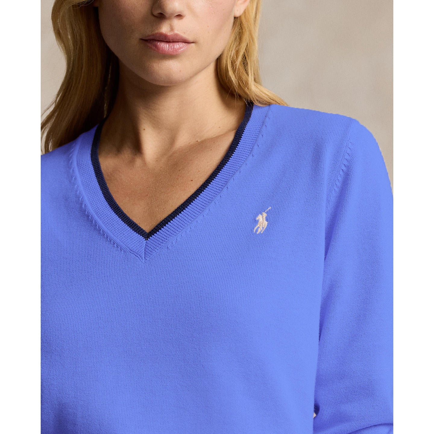 RLX Ralph Lauren Cotton Blend V -Neck Golf Jumper - Greenwich Blue