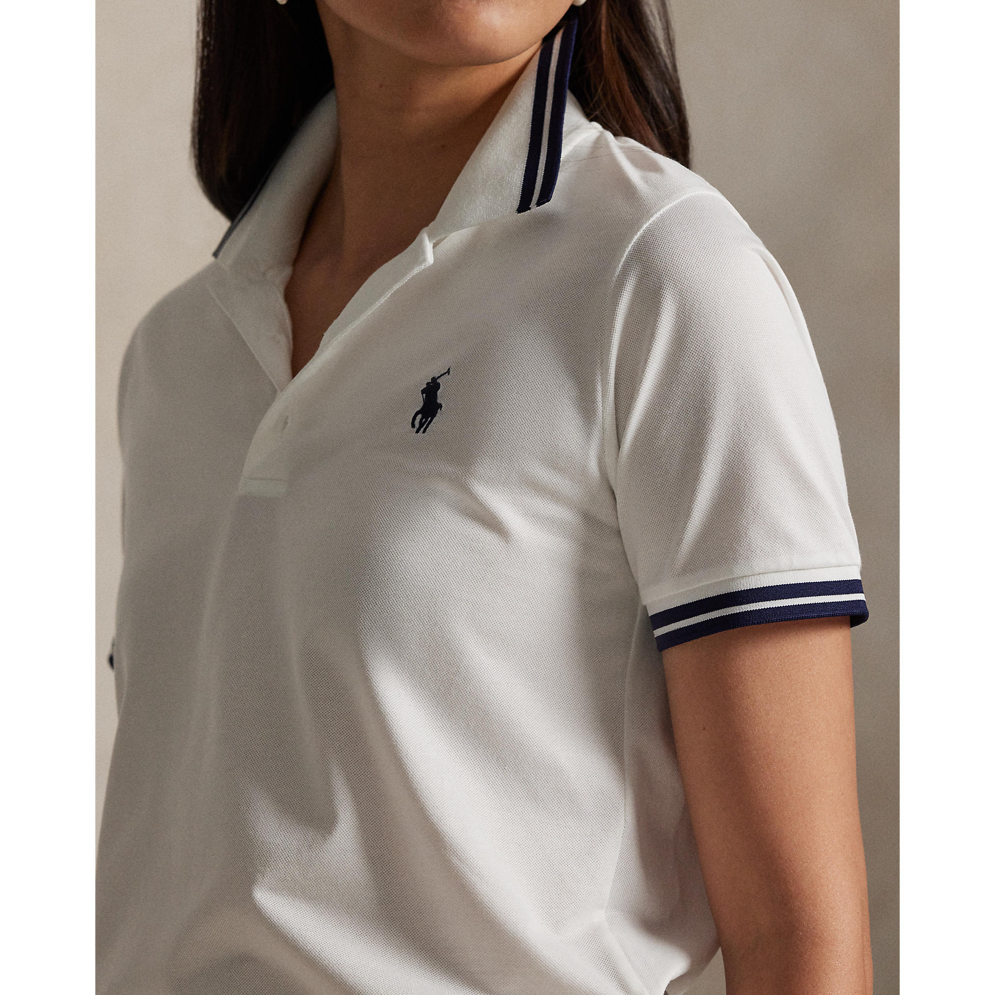 RLX Ralph Lauren Women's Tour Pique Golf Shirt - Keramik Putih/Angkatan Laut Ruling