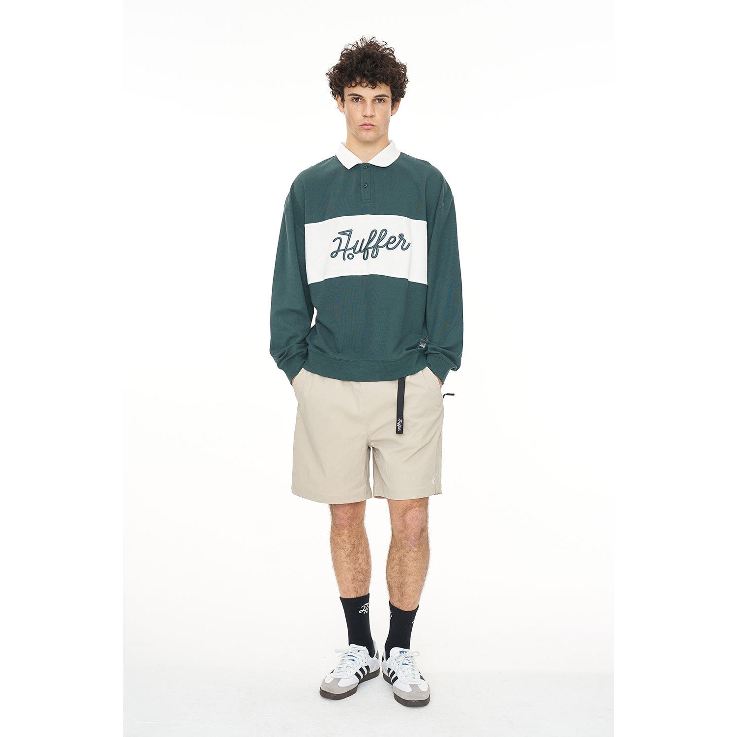 당신이 알아야 할 사항은 다음과 같습니다: 245gsm 면 60%, 폴리에스테르 40% 피케, 대담한 Huffer 문장 자수가 있는 박시한 스트리트웨어 핏으로 시그니처 Huffer 에너지를 코스에 불어넣습니다.