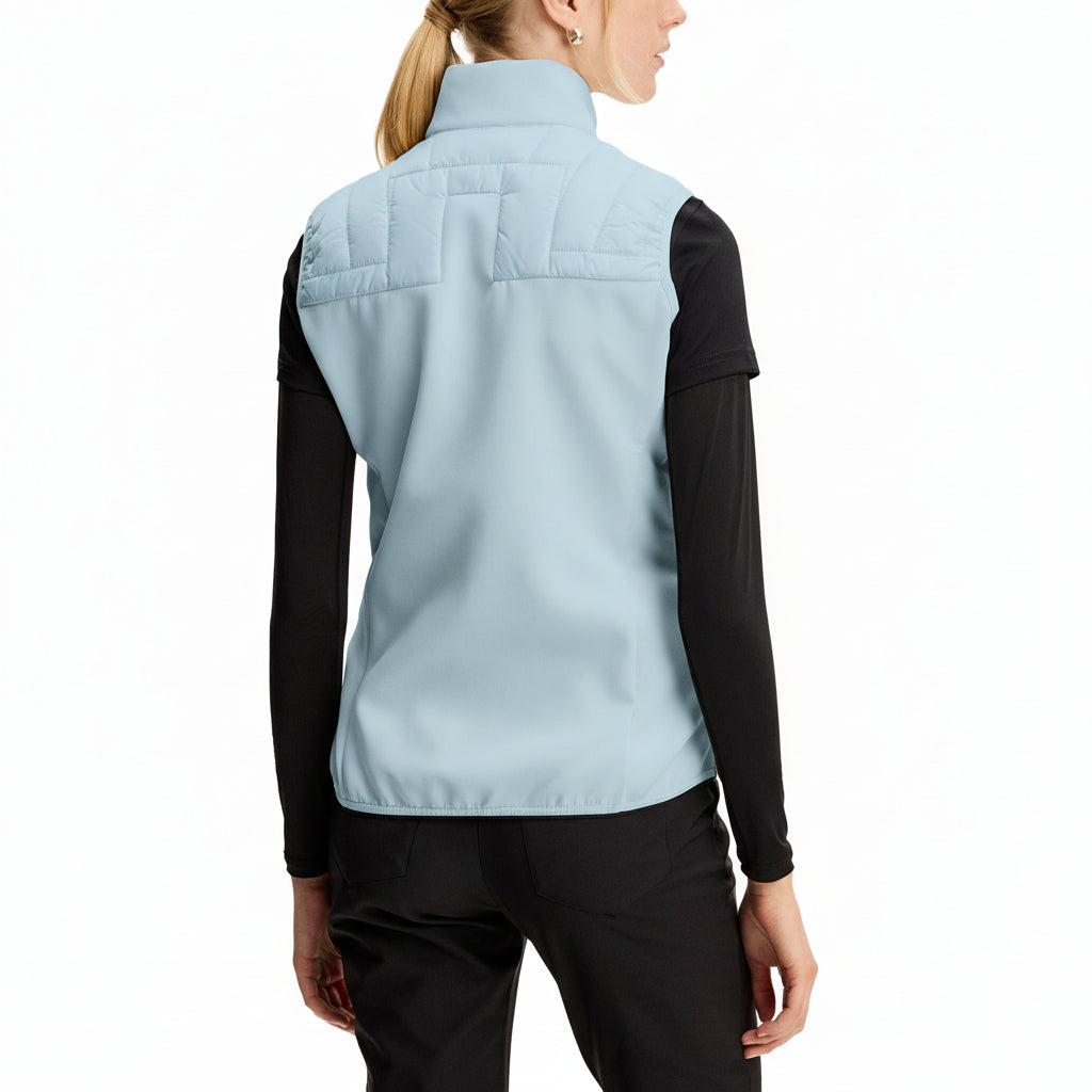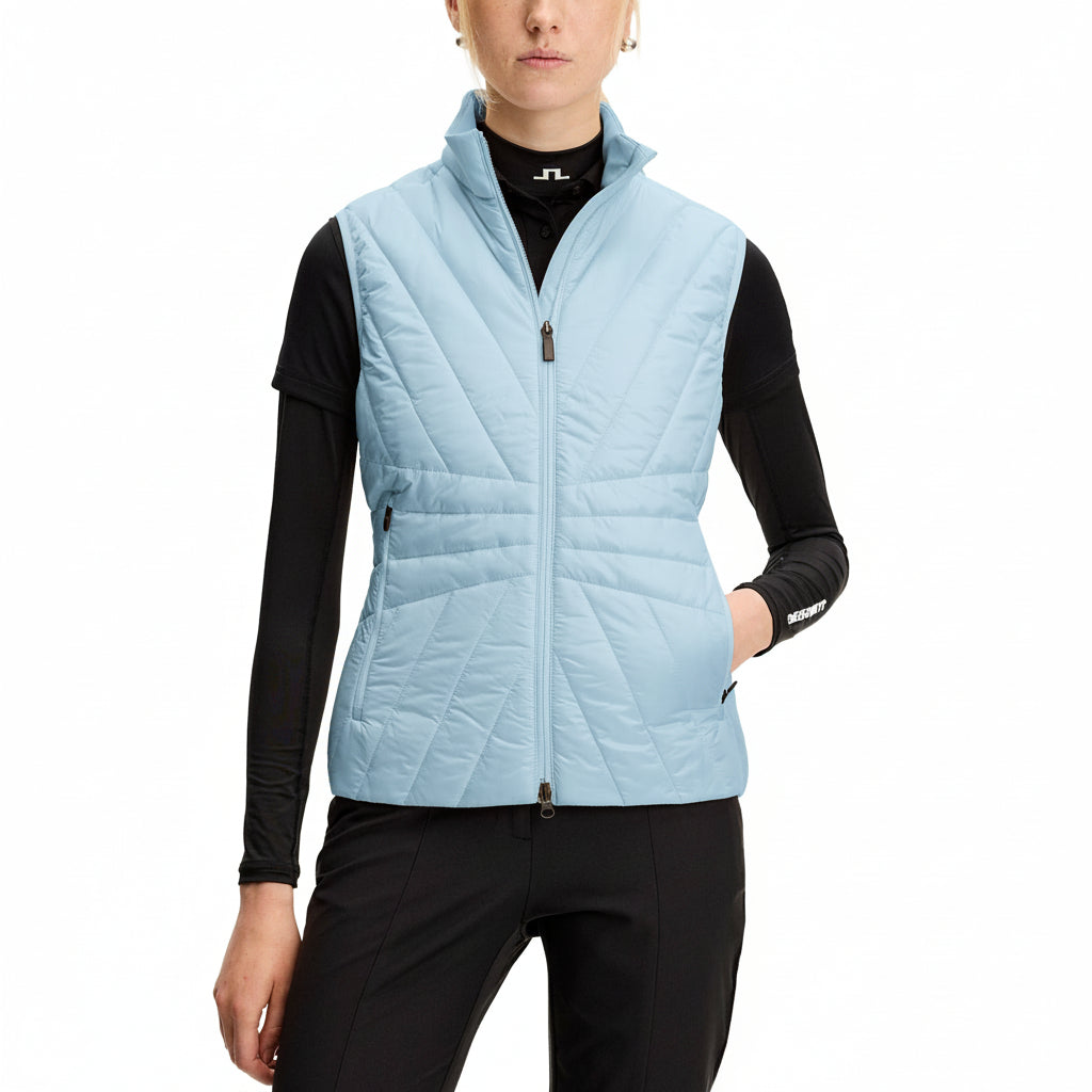 J.LINDEBERG Holma Quilt 하이브리드 조끼는 가벼운 편안함과 함께 목표한 따뜻함을 제공하여 팔을 자유롭게 유지하여 자연스러운 움직임을 유지합니다. 패딩 처리된 퀼팅 인서트와 대비색 패브릭으로 디자인된 이 제품은 활동적이거나 일상적인 착용을 위해 니트 위나 아우터웨어 아래에 쉽게 레이어링할 수 있는 스포티하면서도 세련된 룩을 제공합니다.