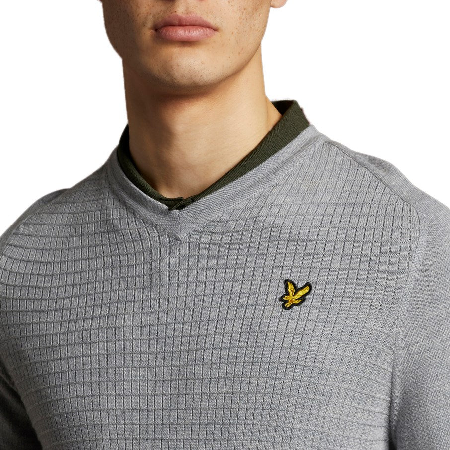 Lyle & Scott Merino Grid Texture v Neck Jumper -Pebble