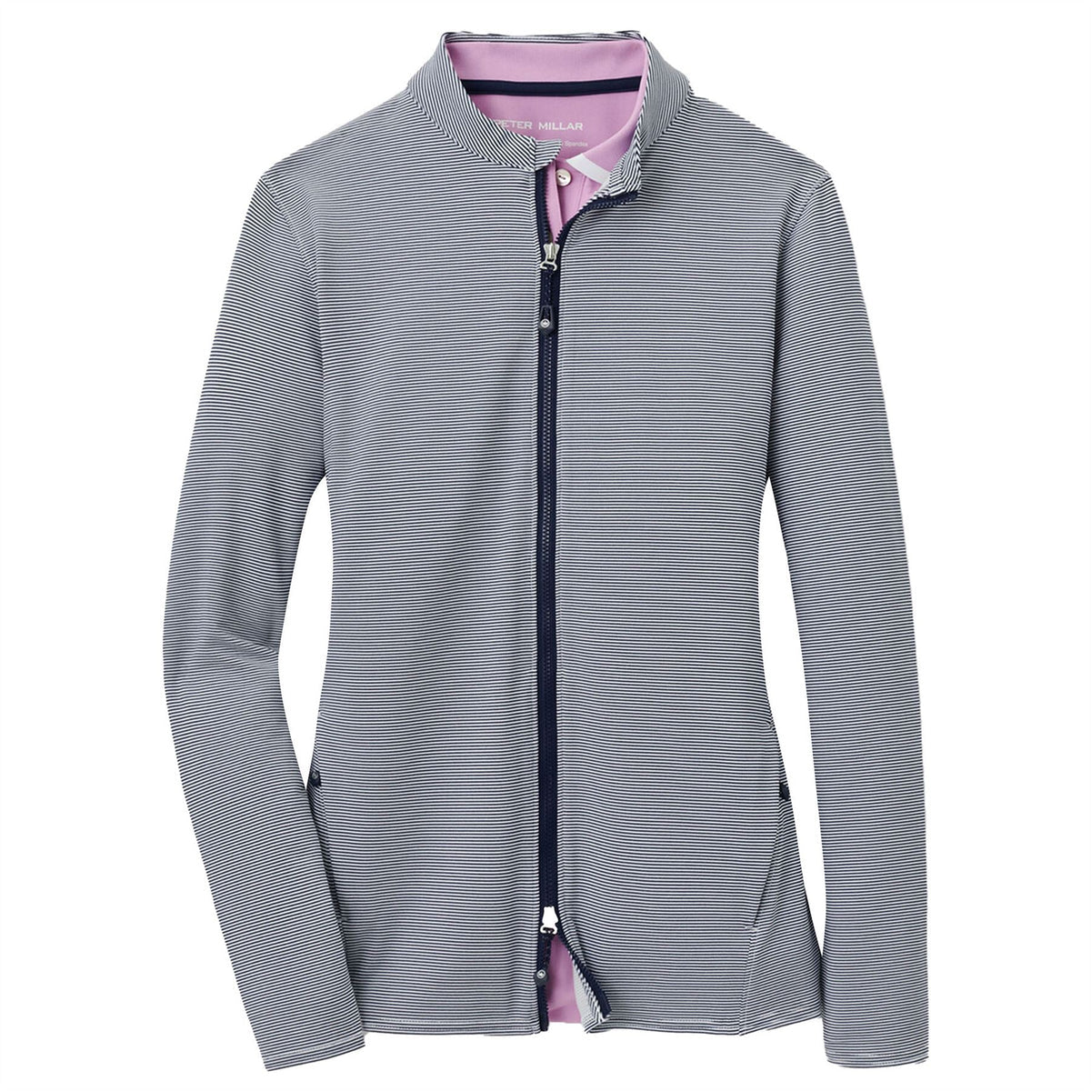 Jaket Golf Katy Sugar Stripe Zip Penuh Peter Millar Wanita - Tentera Laut
