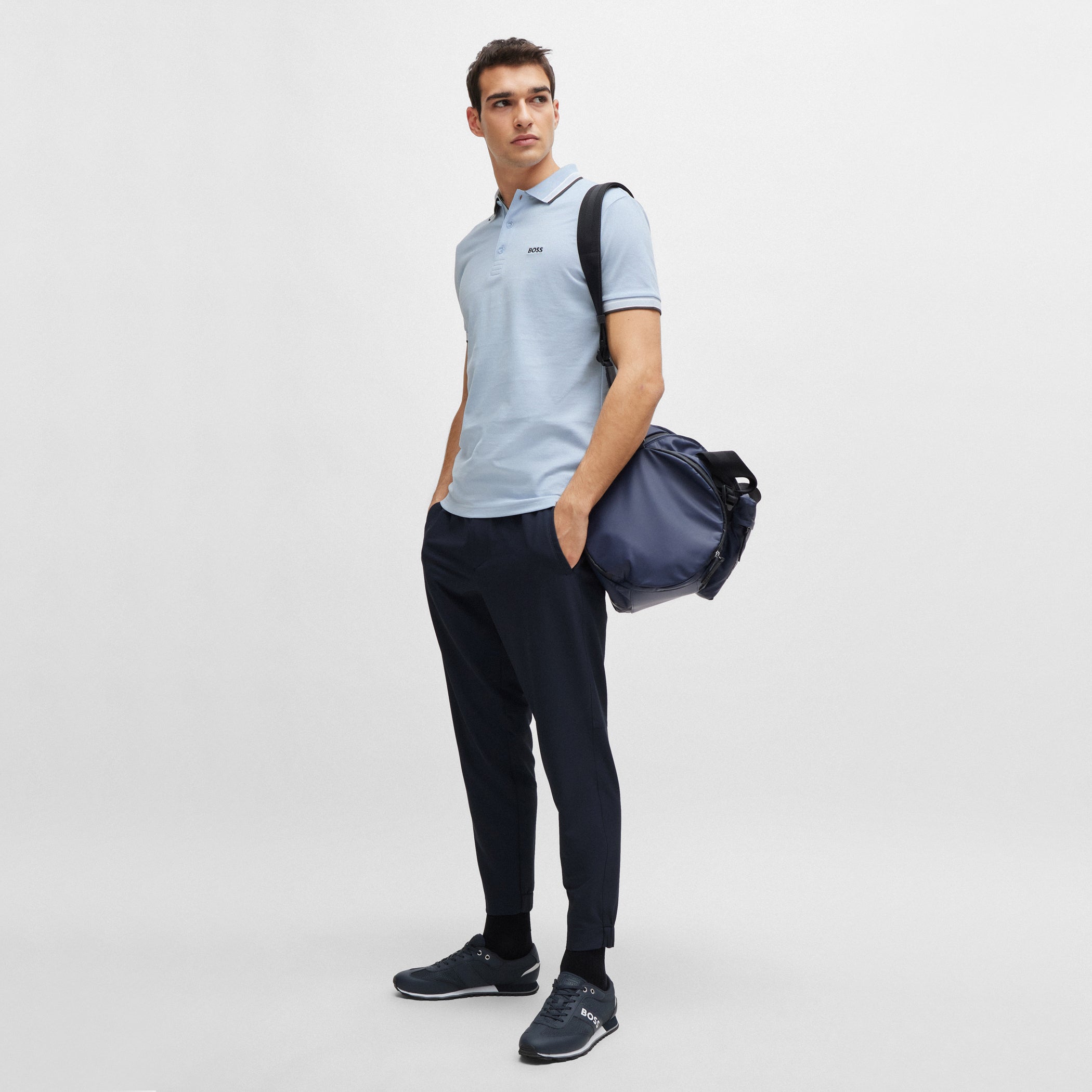 A signature polo shirt by BOSS Menswear, cut to a regular fit. Featuring contrast tipping and a logo at the left chest, this short-sleeved polo shirt is designed in cotton pique and detailed with further BOSS branding at the undercollar. For our BETTER BOSS products, we always use at least 60% better raw materials. This product is made with organic cotton. Our organic standards do not allow the use of synthetic fertiliser, pesticides or genetically modified seeds.
