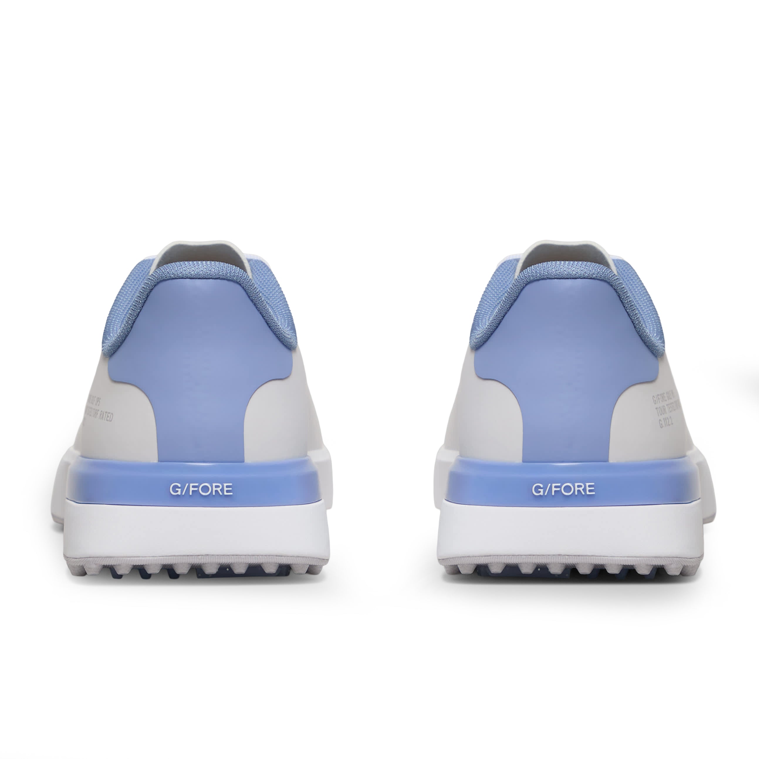 The new g.112 golf shoe has an updated anti-slip grip outsole with the same sleek silhouette and low-drop design that enhances your connection to the ground. Equipped for optimal grip with heel-to-toe turf traction, it's the go-to shoe for all day play with a comfortable eva midsole and mesh lining. Wear with one of our straight leg trousers and classic polos for a look that works on the course or at the clubhouse. This one has a fun pop of colour with the love g lips on the kiltie.