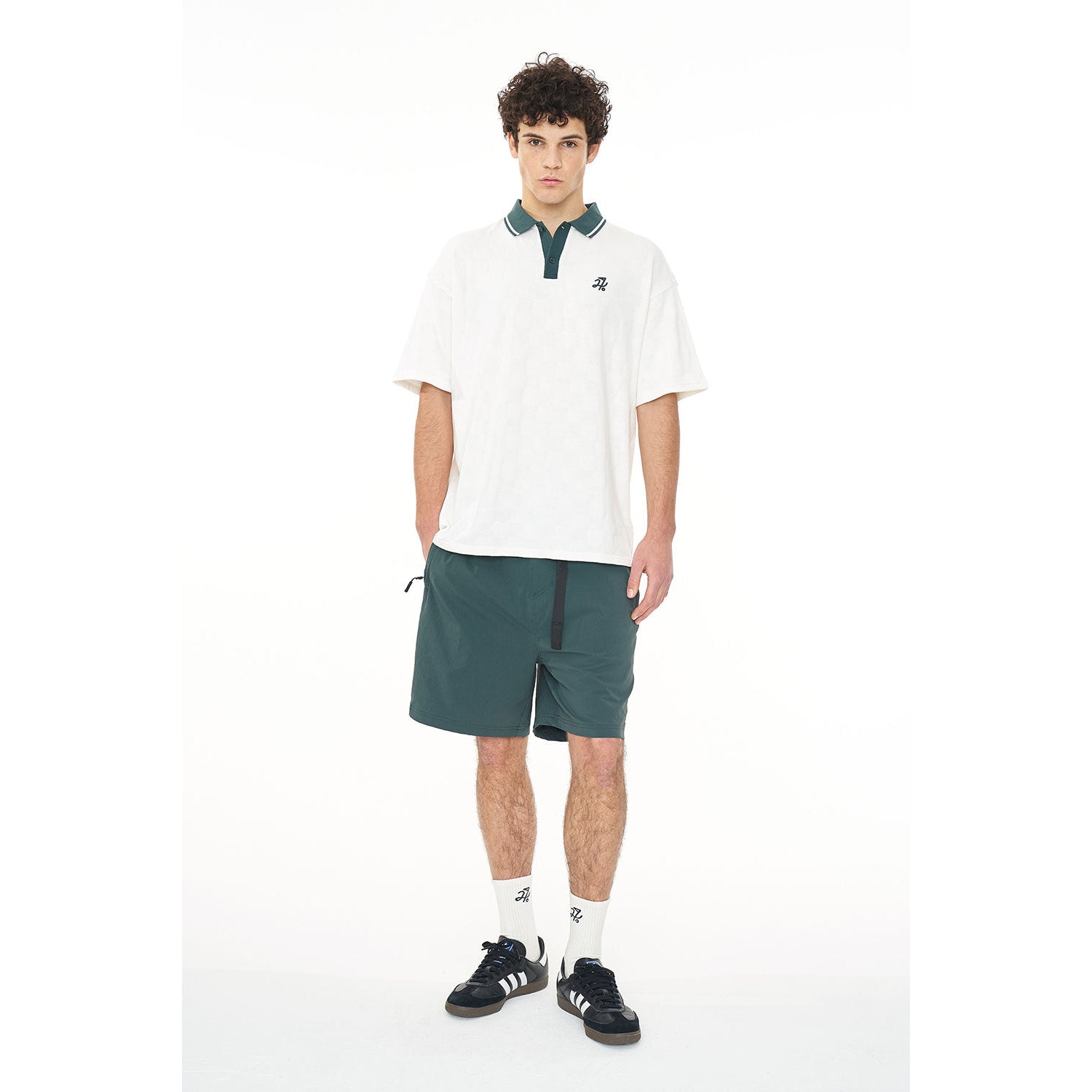 Heres what you should know: Performance Check SS Polo 72% Cotton 28% Polyester / Midweight Custom Huffer check knit / Slightly boxy streetwear fit