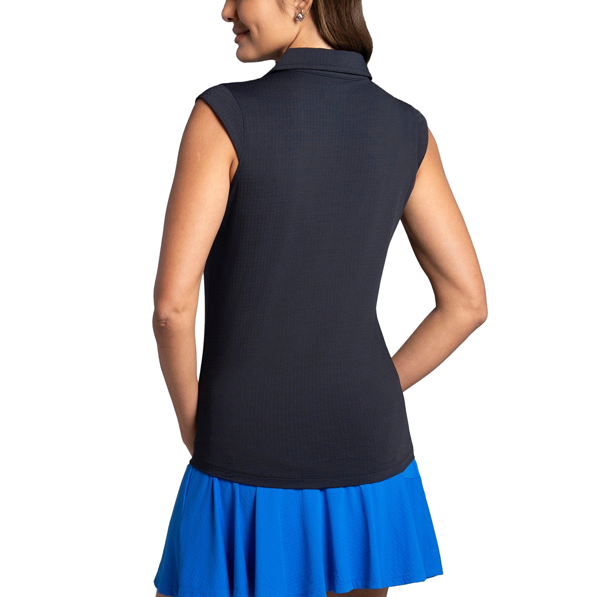 IBKUL Women's Solid Sleeveless Zip Golf Polo Shirt - Black