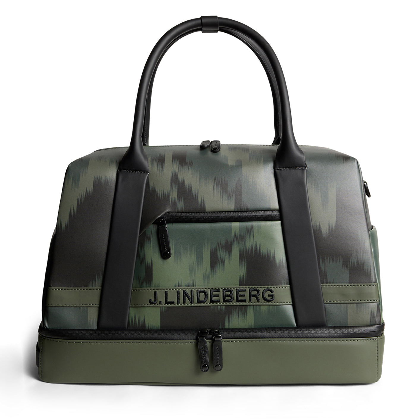 Designed with a spacious main compartment and sturdy construction, it features two vented sections for added breathability and a water-resistant zipper to protect your belongings. A zippered lower compartment provides quick-access storage, perfect for shoes or gear. Embroidered J.Lindeberg branding and Bridge logos on both sides complete the look with signature refinement.