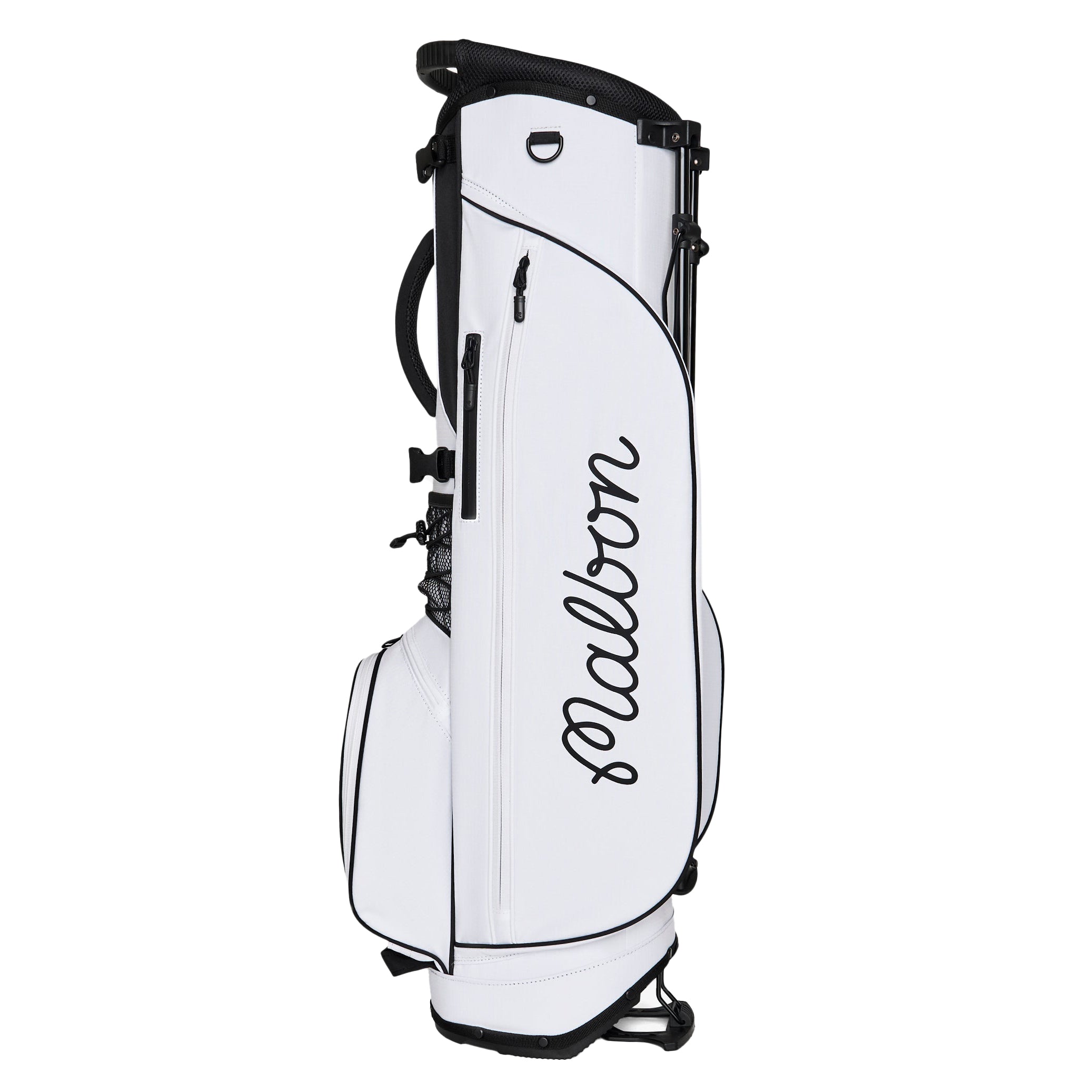 All-Day Performance, Signature Malbon Style Showcasing signature Malbon branding, the Walking Bag is crafted from durable nylon rip-stop fabric to withstand everything a round of golf can throw at it. Multiple zippered pockets, including a mesh rangefinder pocket and magnetic closure front pocket—keep your essentials close at hand, while cross back straps with clips and a lightweight design make carrying your clubs effortless.