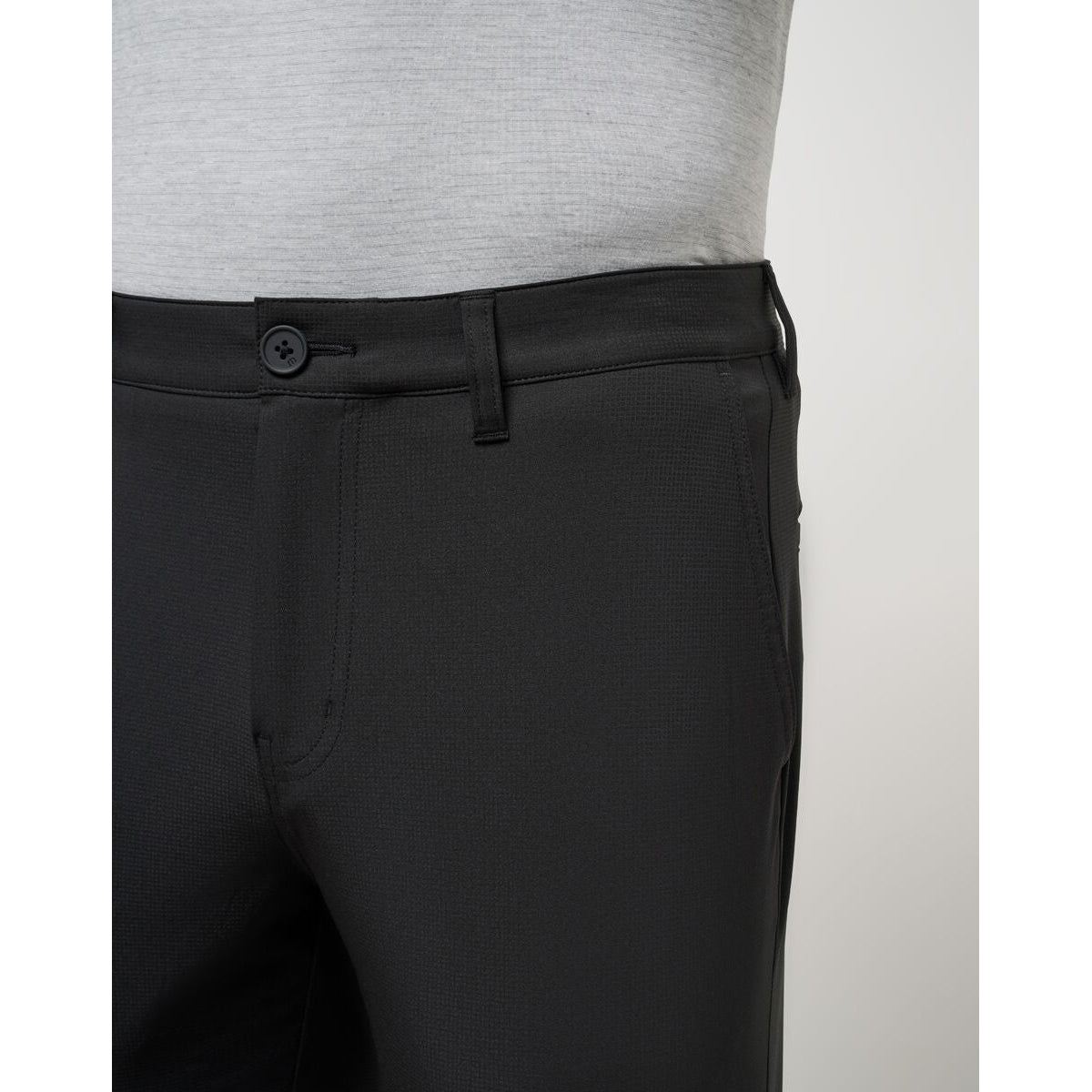 Functional Design: Silicone-grip interior waistband with belt loops; invisible zipper pocket on right side seam; double welt back pockets