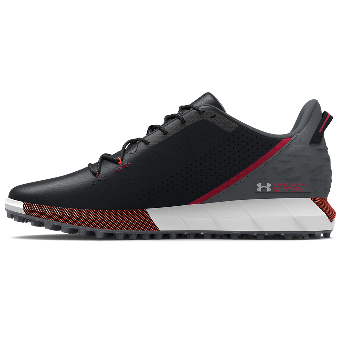 Breathable, supportive engineered microfiber upper & lightweight waterproof membrane keep you cool & dry Molded heel is anatomically designed to improve support & fit Molded EVA footbed provides supportive step-in comfort UA HOVR™ placement supports the natural motion of the foot in a golf swing & helps eliminate impact UA Rotational Resistance outsole for lightweight lockdown traction to support your swing TPU spikeless outsole for a lighter, more flexible feel without any compromise in traction