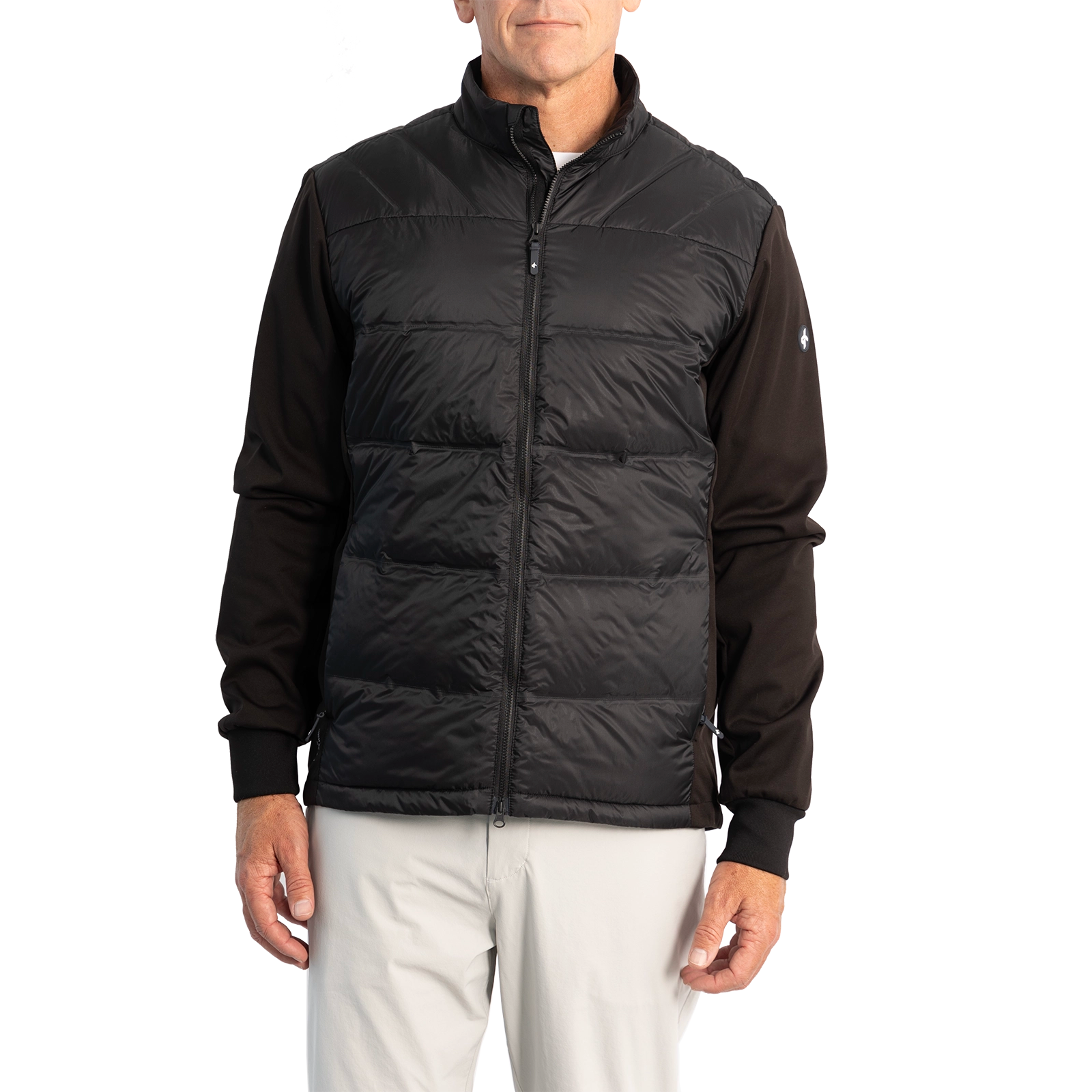 Pro hybridjackan ger en perfekt kombination av kärnvärme och rörelse på och utanför banan. En fantastisk jacka att lägga till i din garderob, perfekt för mellan säsonger. Pro Hybridjackan är en nivå varmare och mer vadderad än vår bästsäljande klassiska hybridjacka. Jackan har en vanlig passform. Ett klassiskt snitt med en tidlös look.