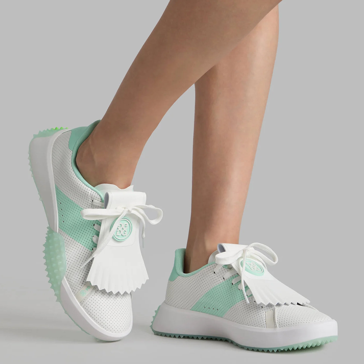 Kvinnors G.112 P.U. Läder Kiltie Golf Shoe stöder en premiumföreställning med en atletisk stil och banbrytande innovation. Utrustad för optimal dragkraft och stabilitet med ett lågt dropp- och överlägset bågstöd. Dessutom avtagbara kiltie -accenter för mångsidighet. Det är go-to-skon för hela dagen på banan.