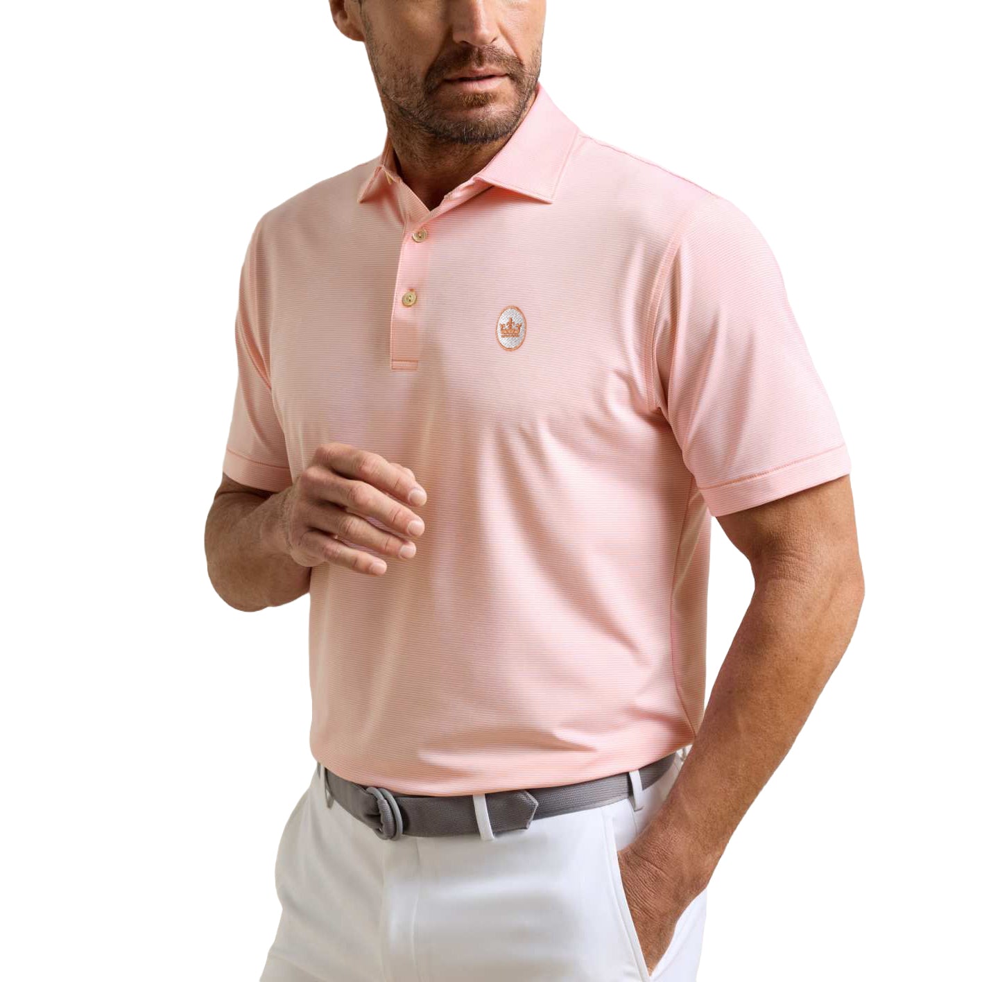 - Herrpikétröja i 92 % polyester / 8 % spandex -Klassisk passform -Sommar Comfort tillverkning - Fyrvägsstretch, fukttransporterande, lättskötta fördelar och luktbeständiga egenskaper -UPF 50+ solskydd -Sean självtillverkad krage, knappslå med tre knappar -Maskintvätt med liknande färger; Torktumla låg. Stryk inte. Kemtvätt inte -Om mellan storlekar rekommenderar vi att storleken minskas