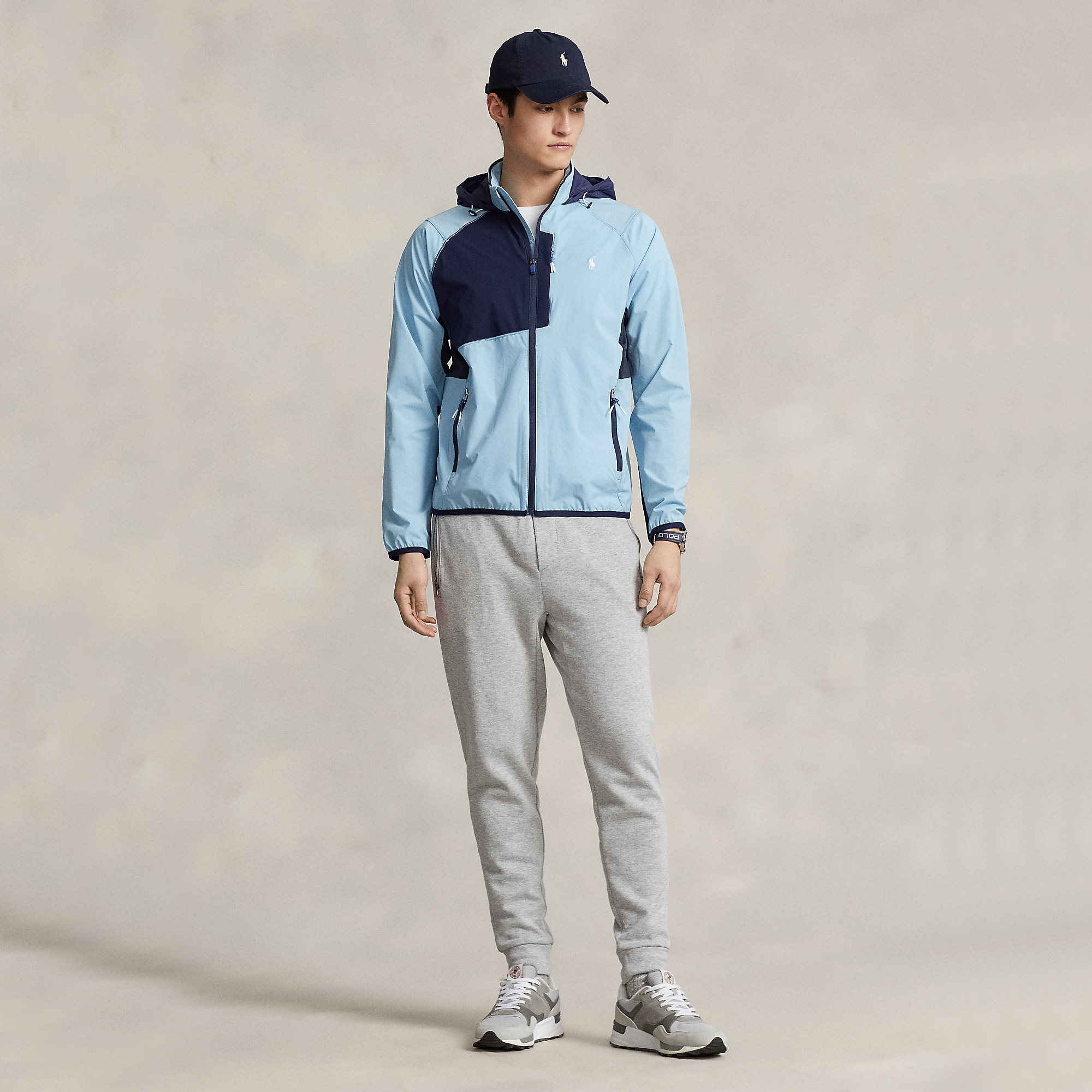 Denna stretchiga jacka, som har en bekväm förpackbar design och en stowaway huva, är utformad med vattenavvisande tyg för att hålla dig bekväm och skyddad från elementen.
