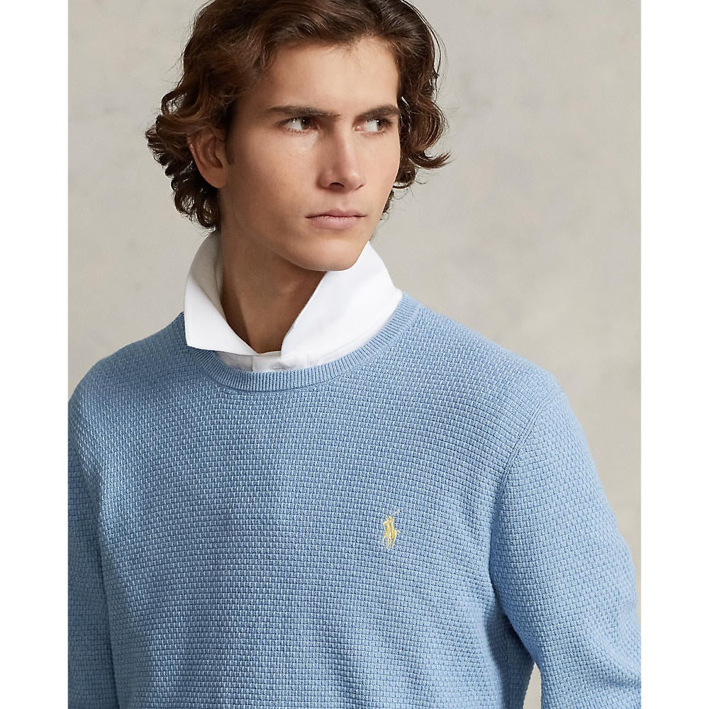 Denna tröja kombinerar en strukturerad söm med en mjuk bomullsblandning som innehåller coolmaxfibrer för att hålla dig sval, torr och bekväm.