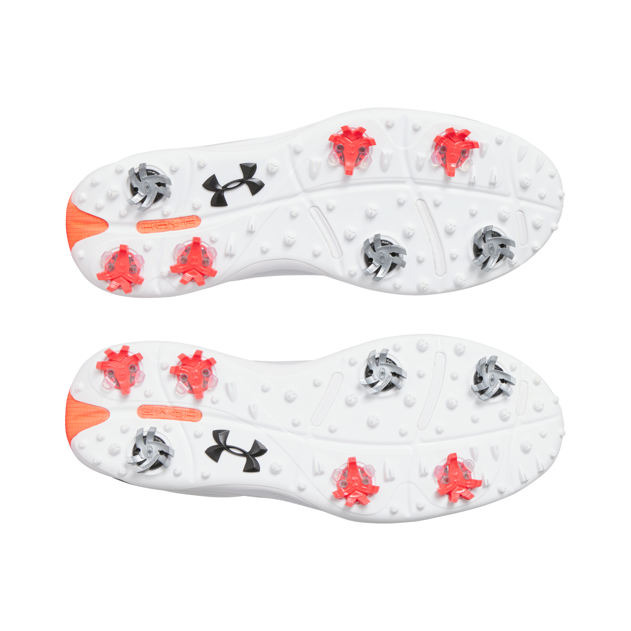 -Bable, vattentät mikrofiber övre är andningsbar, mjuk och bekväm att hålla dig sval och torr -Molded sockliner för förbättrad passform och komfort -Ua hovr ™ dämpning i hälen hjälper till att eliminera påverkan -Ny UA S3-spikar-designade med SoftSpikes® & en golfbiomekanist-för spelförändrande riktningstraktion -Ljus, hållbar och flexibel TPU -yttersula -Bred