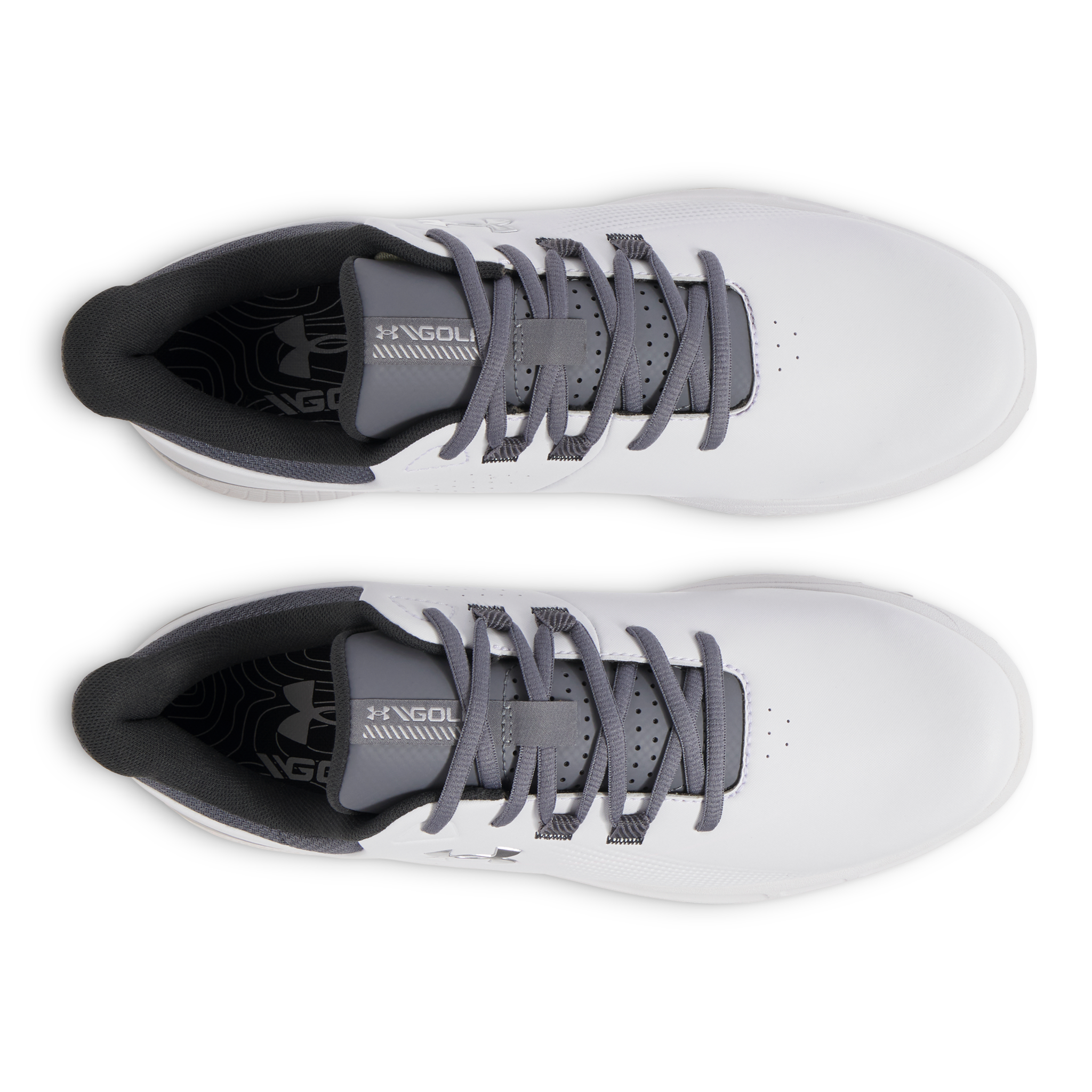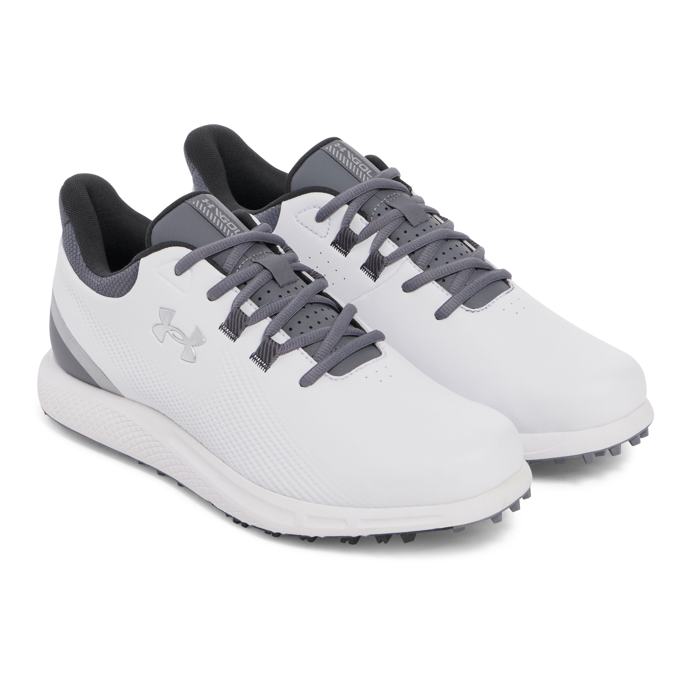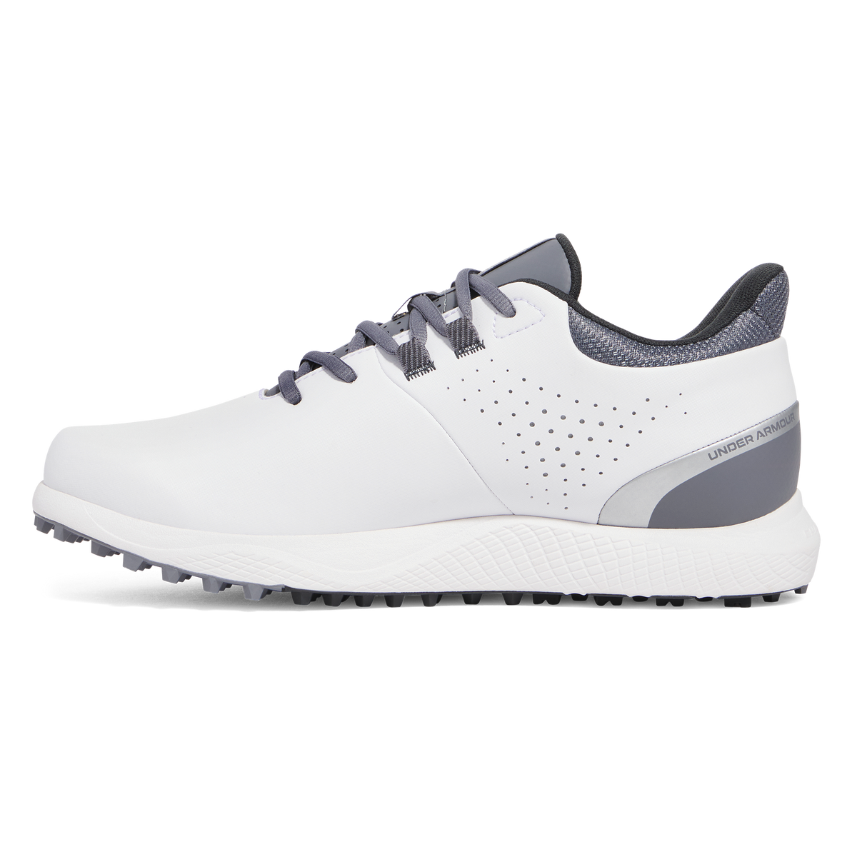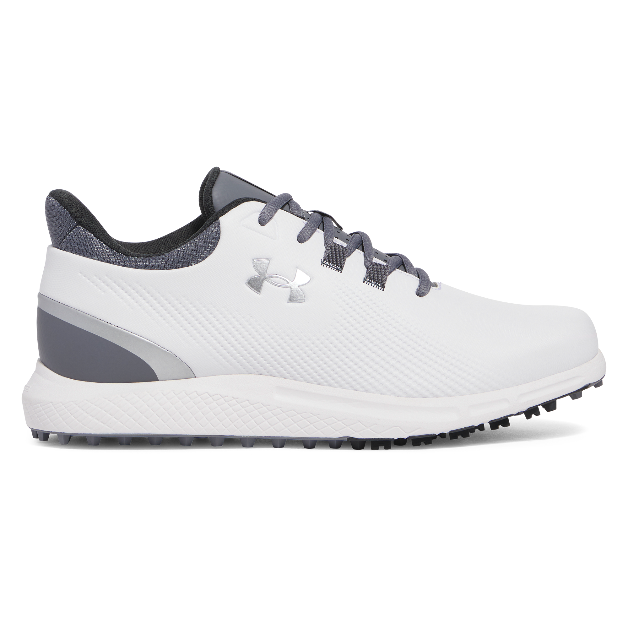 UA Medal Spikeless Golf Shoes är gjorda av en lätt, andningsbar ovandel i mikrofiber med vattenavvisande egenskaper för att hålla dina fötter svala och torra. Skorna har en spikfri hybrid yttersula med rotationsmotståndskraft som är lättare och mer flexibel än en vanlig sula, men ändå undviker att offra greppet.