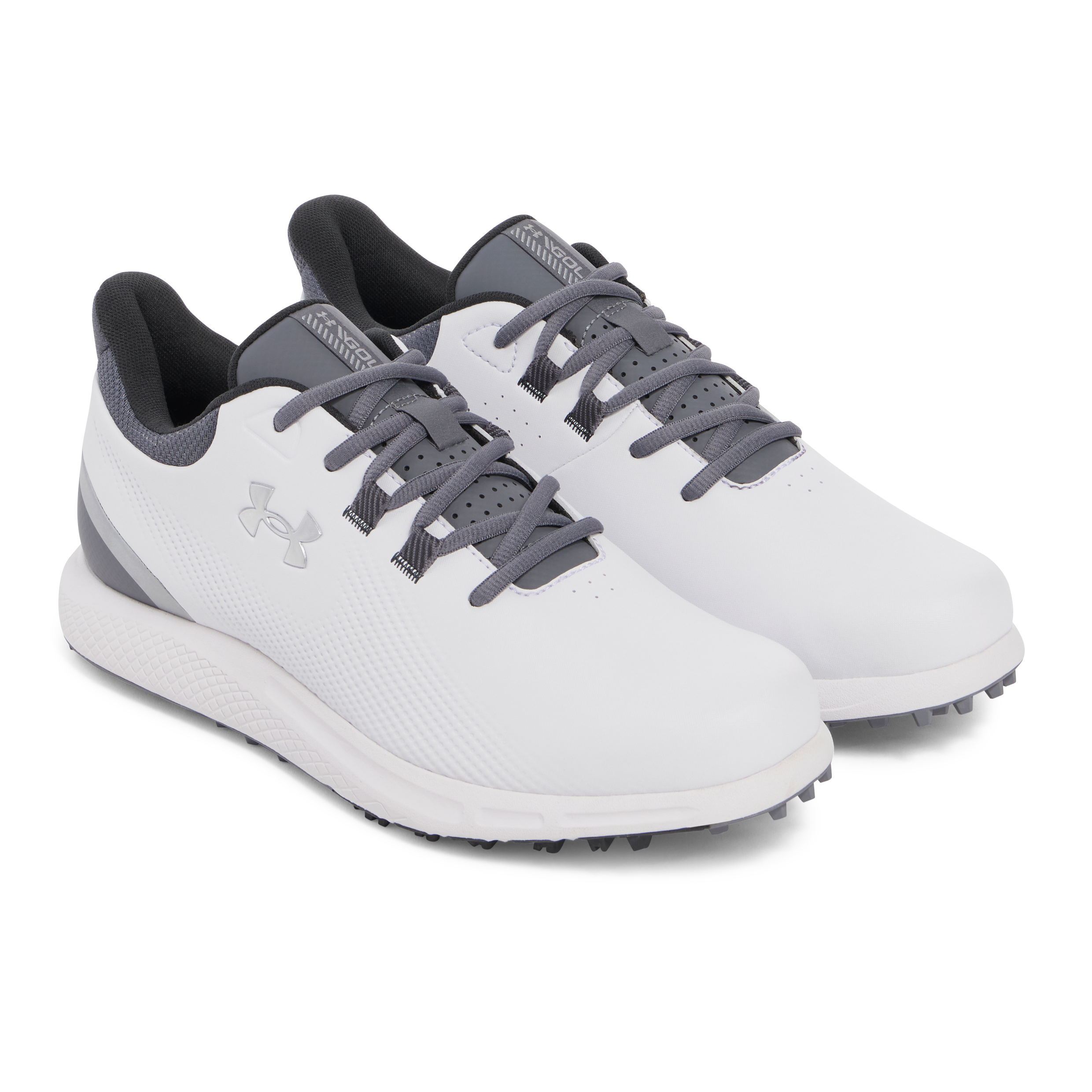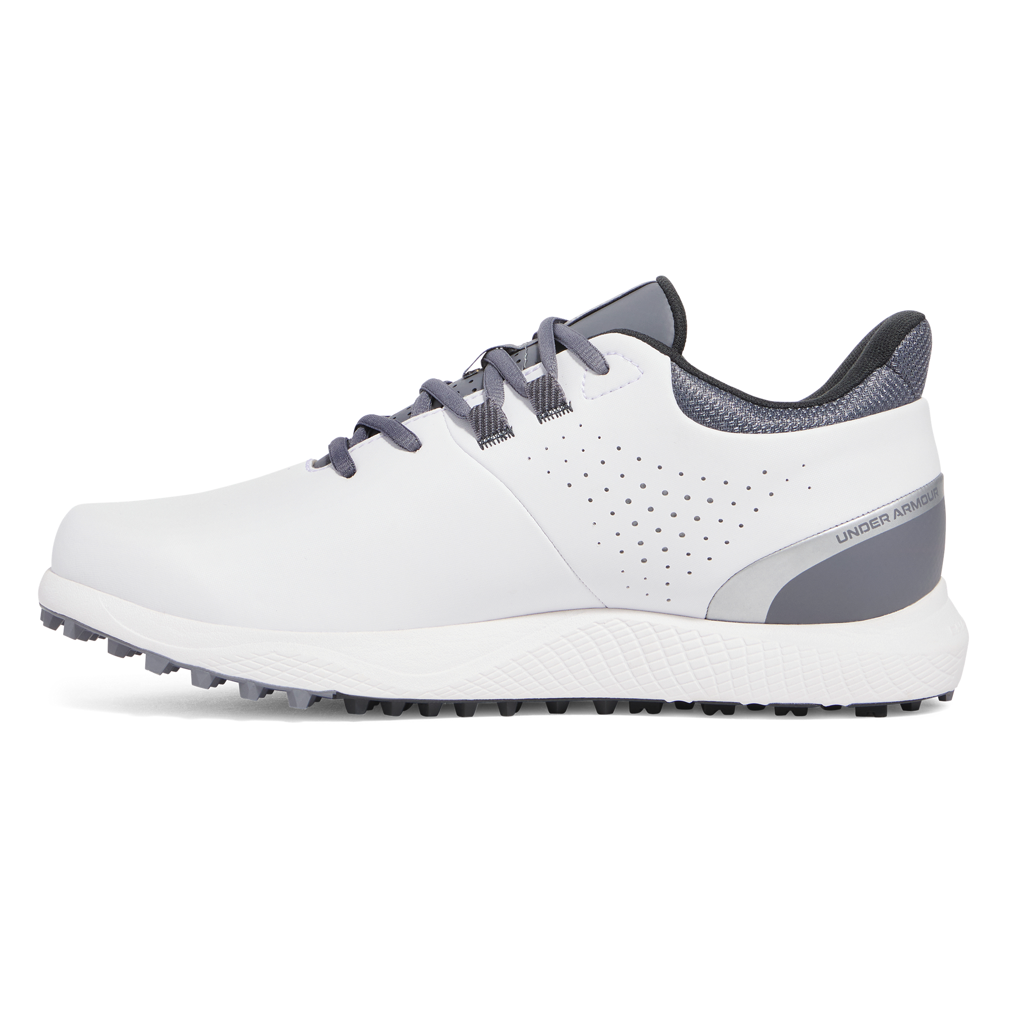 UA Medal Spikeless Golf Shoes är gjorda av en lätt, andningsbar ovandel i mikrofiber med vattenavvisande egenskaper för att hålla dina fötter svala och torra. Skorna har en spikfri hybrid yttersula med rotationsmotståndskraft som är lättare och mer flexibel än en vanlig sula, men ändå undviker att offra greppet.