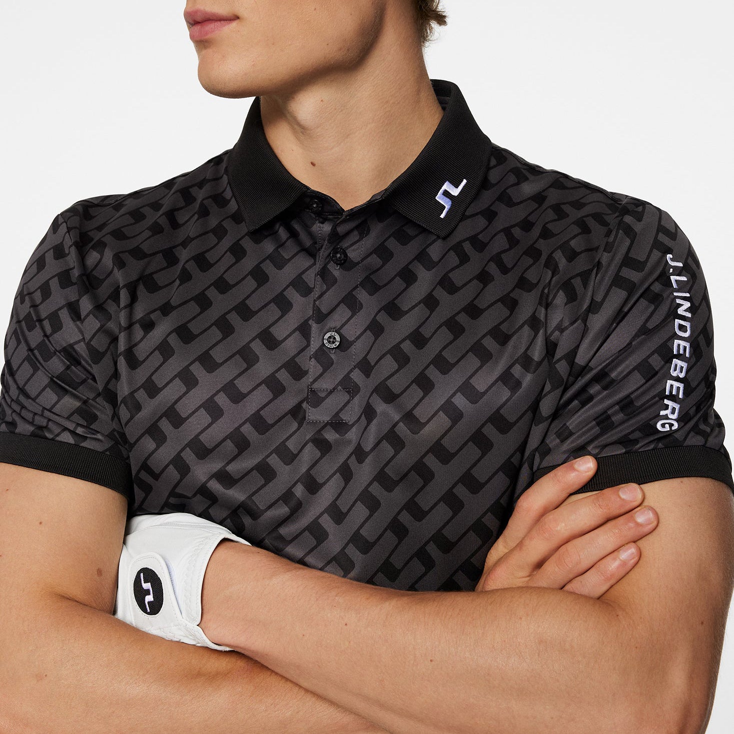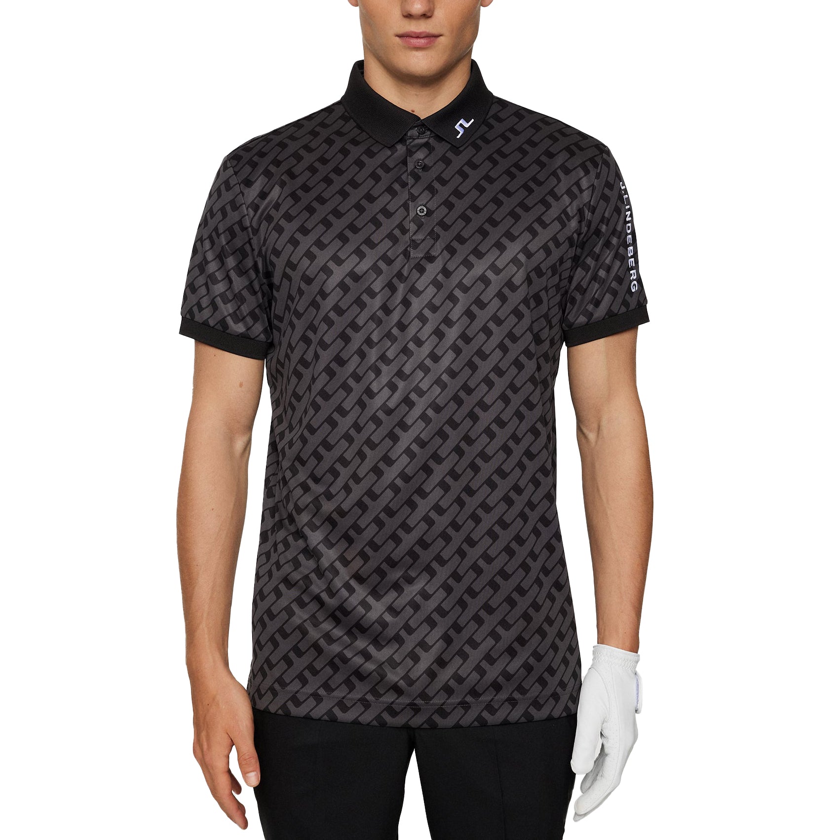 J.Lindeberg Tour Tech常规适合印刷高尔夫球球衫 - 旅游地理色调黑色
