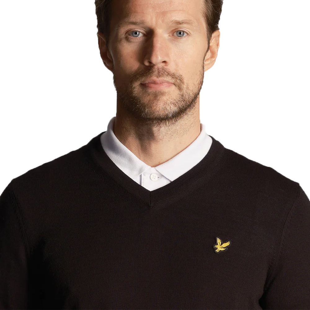 Lyle&Scott Merino Blend V -Neck编织 - 喷气黑色