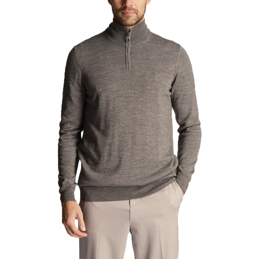Lyle&Scott Tonal Eagle Merino混合1/4 ZIP编织 - 中灰色Marl