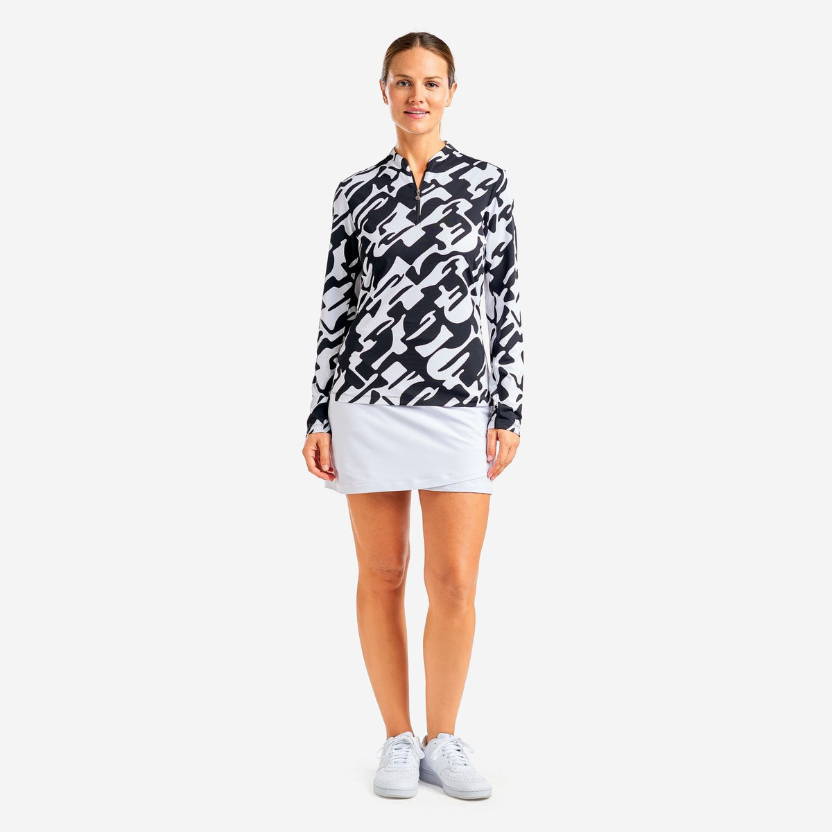 Nivo妇女洛丽塔紫外线长袖模拟脖子高尔夫衬衫 - 黑色/白色
