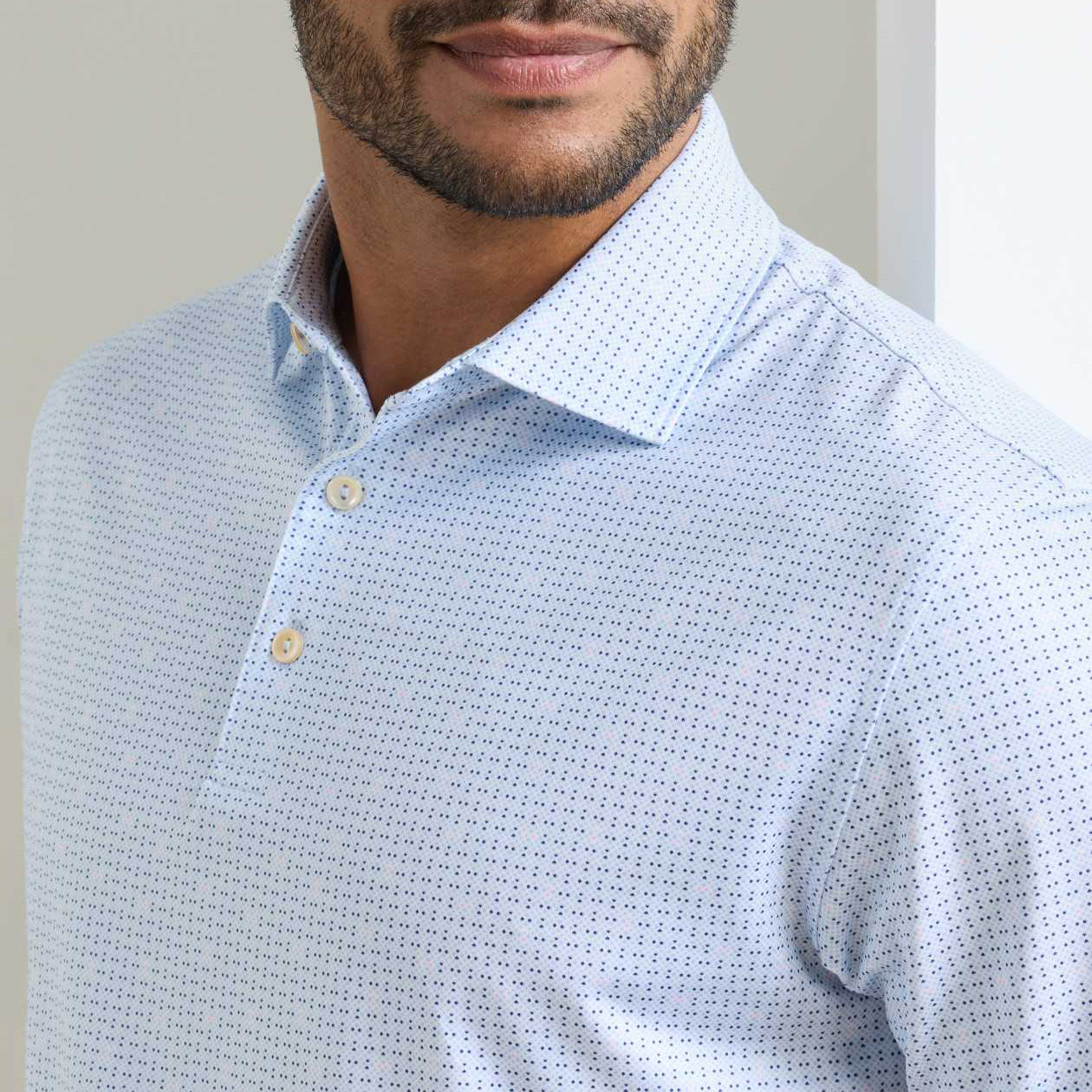 Peter Millar 的 Summer Comfort 平纹针织 Polo 衫是柔软性和卓越性能的黄金标准。它们的标志性面料具有四向弹力、吸湿排汗和 UPF 50+ 保护功能。这款衬衫采用定制设计的几何印花,增添风格。采用翻领和三纽扣门襟设计。
