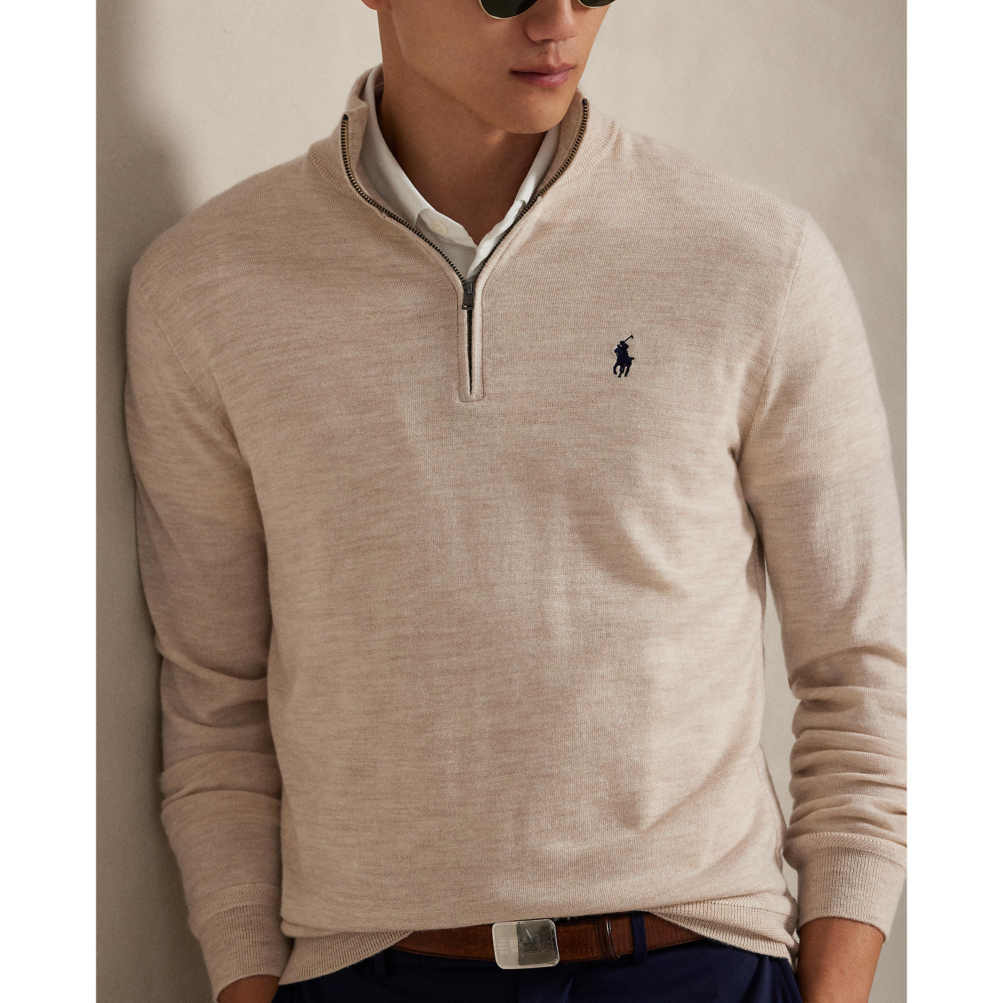 RLX Ralph Lauren棉花混合1/4拉链高尔夫套头衫 - ecru tan heather