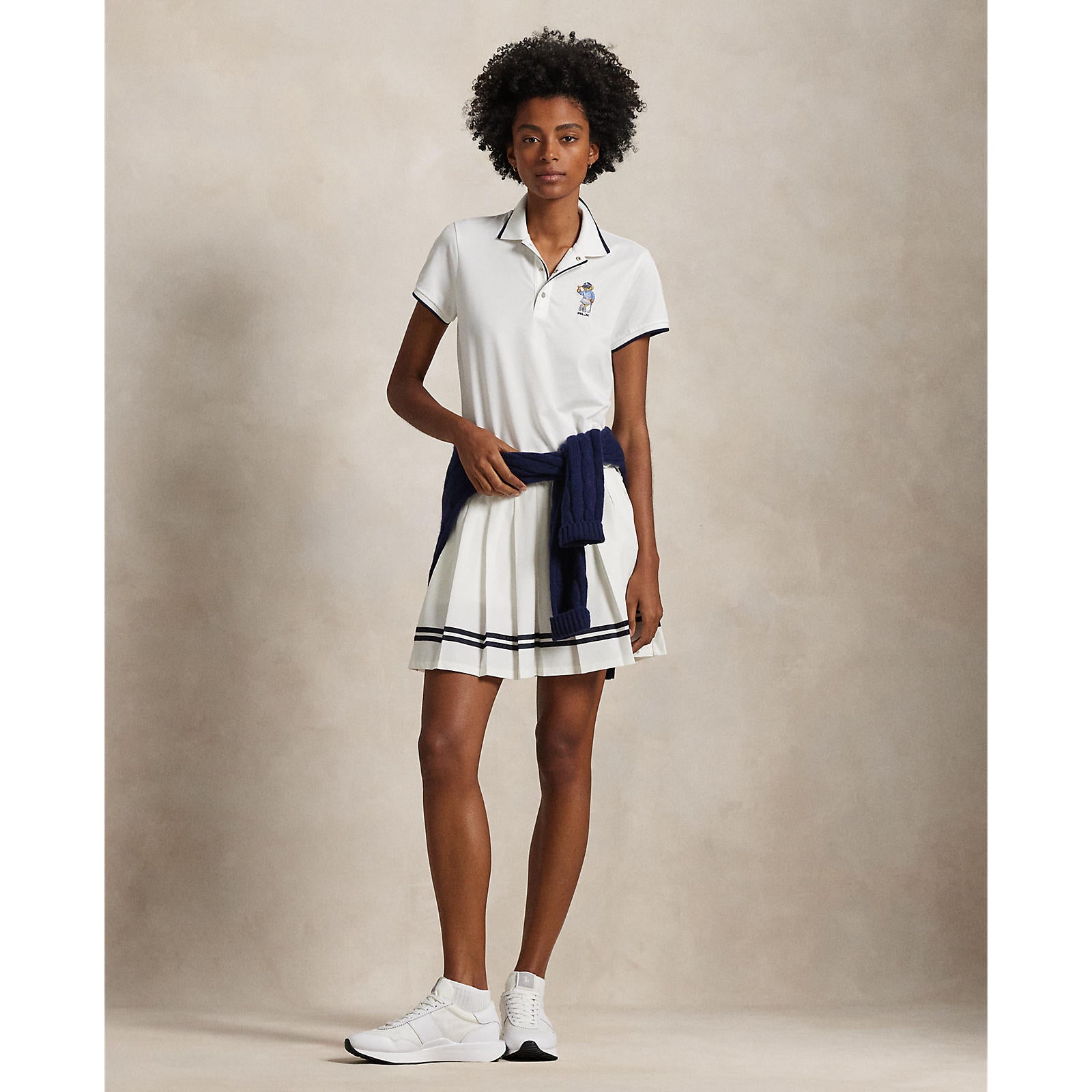 RLX RALPH LAUREN妇女4向伸展pleated高尔夫球运动 - 陶瓷白/海军