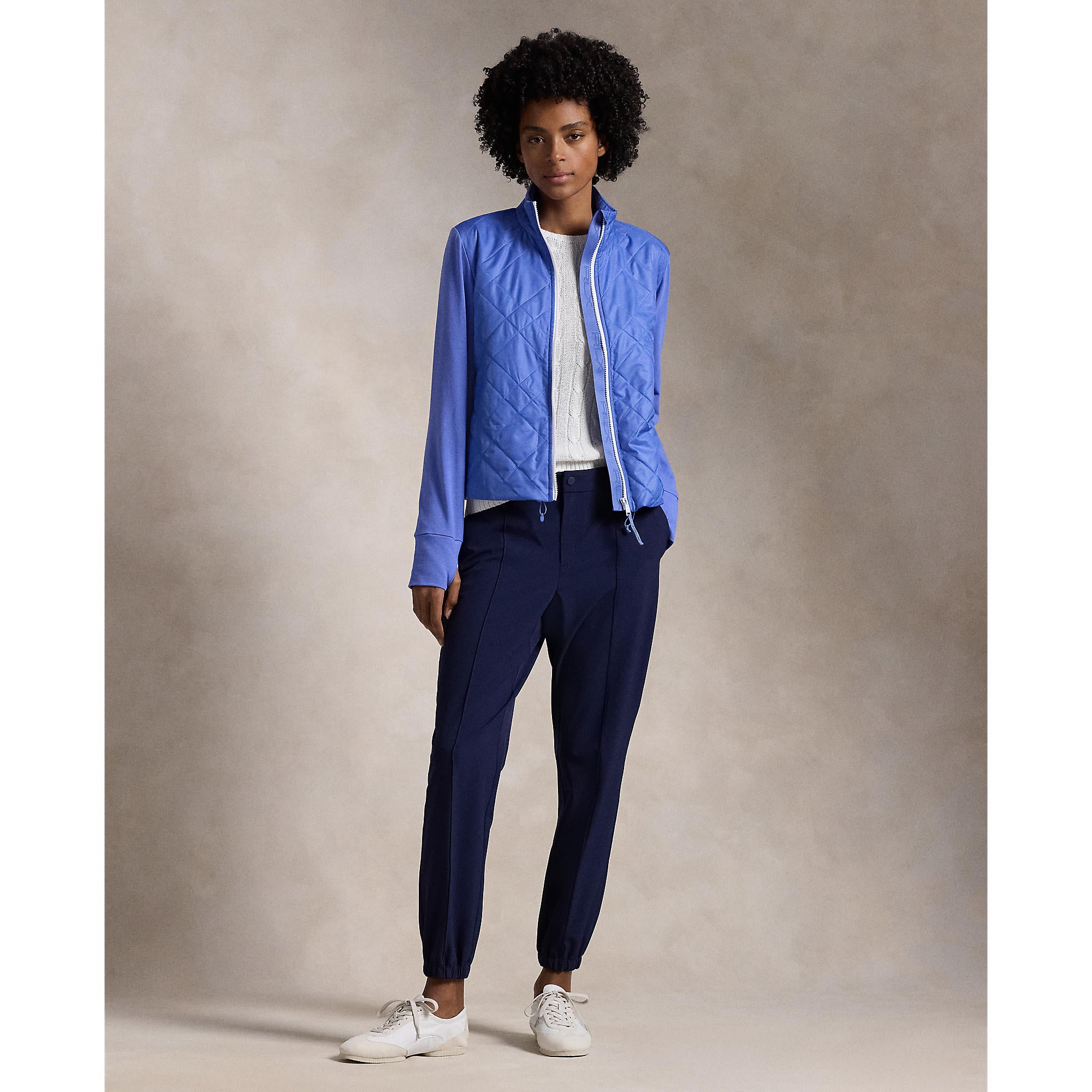 RLX RALPH LAUREN女子表演在Resort Blue穿着全式拉链外套缝制了蓝色的全拉链夹克,既结合了舒适性和风格,又可以实现积极的生活方式。这件夹克用拉伸的棉花混合贝壳和缝制的隔热前面板制成,可提供轻巧的温暖和吸湿性的特性,使您在户外活动中保持舒适。臀部高轻松,略带裁剪的拟合效果,而无用的袖口和拇指孔缝制袖口则增加了功能和样式。内部可调节的蹦极绳和弹性的背部腰部可确保个性化的合身性。