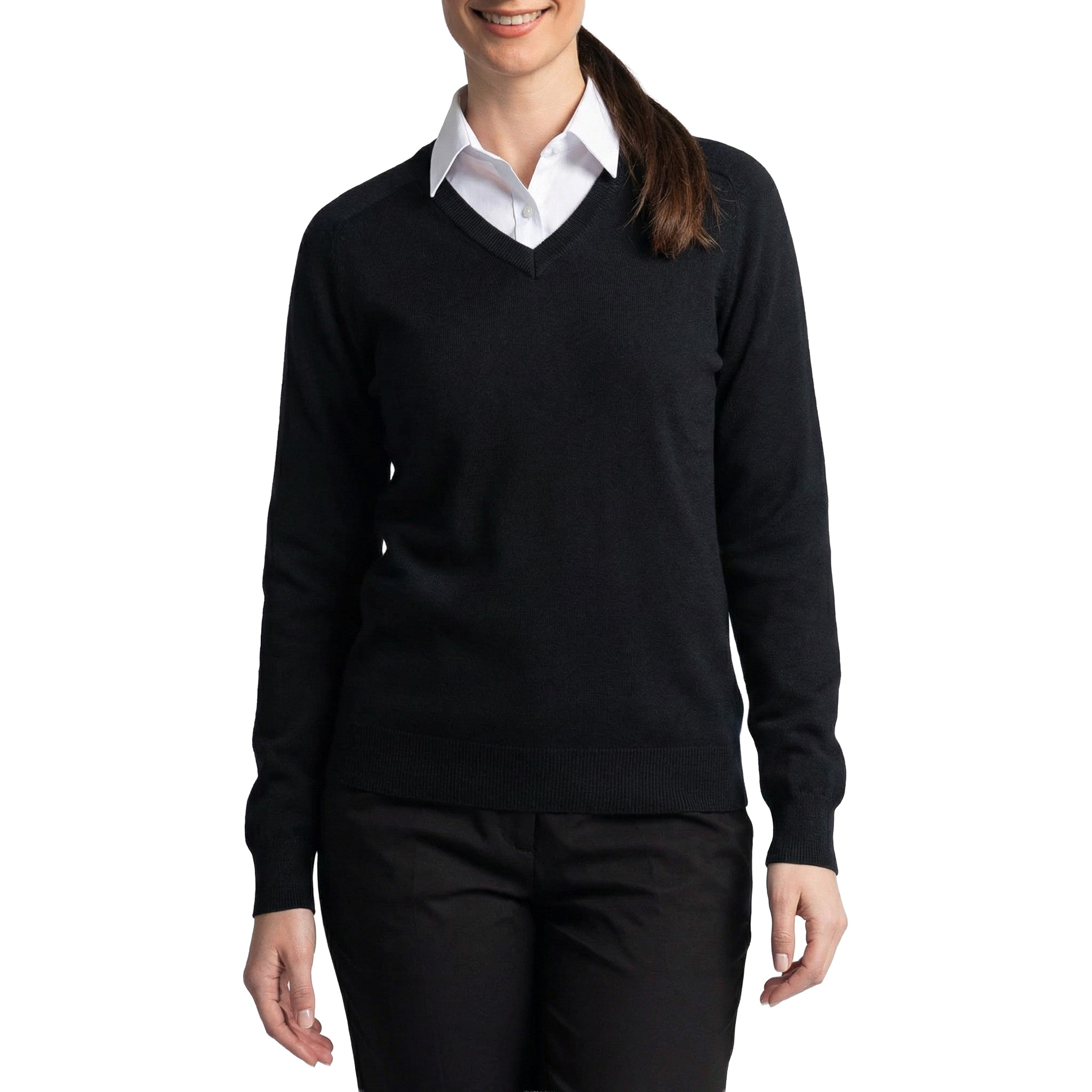 跨女子吉娜V领高尔夫针织 - 黑色
